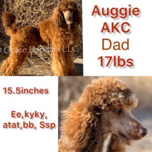 These F1b Mini Goldendoodle puppies are expected to be 15 – 25 pounds when full-grown. They were born on January 1 2026. To reserve your puppy, fill out an application and pay a non-refundable $500 deposit. Mama Heidi is a 15 pound F1 Mini Goldendoodle. Papa Auggie is a 17-pound AKC red sable Poodle. Both parents have been health-tested through Embark. Puppies come with a written 1-year health guarantee, regular deworming, vet check, dewclaws removed, and they are microchipped.
